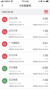 点击校园卡界面“明细查询”,可查看校园卡充值和消费记录。