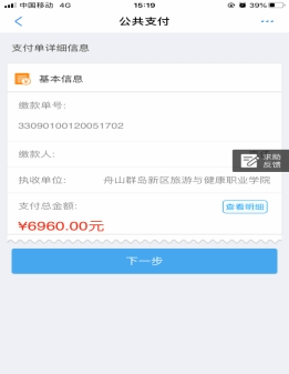 第三步:点击“下一步”,在付费页面点击缴费,完成支付即可。